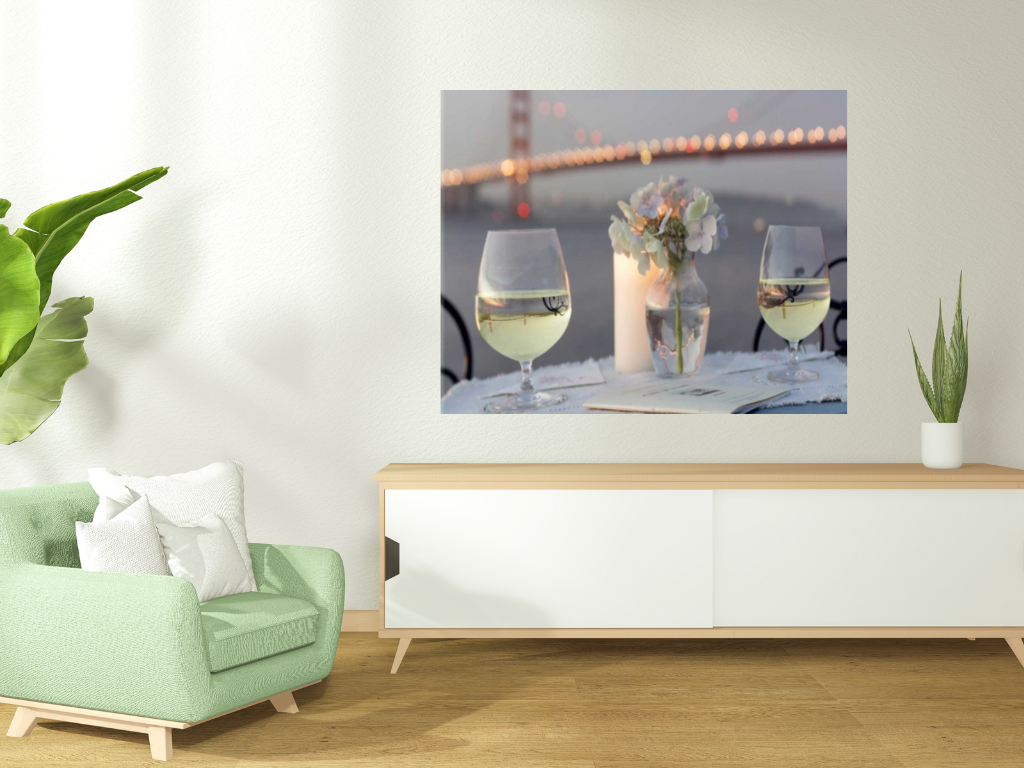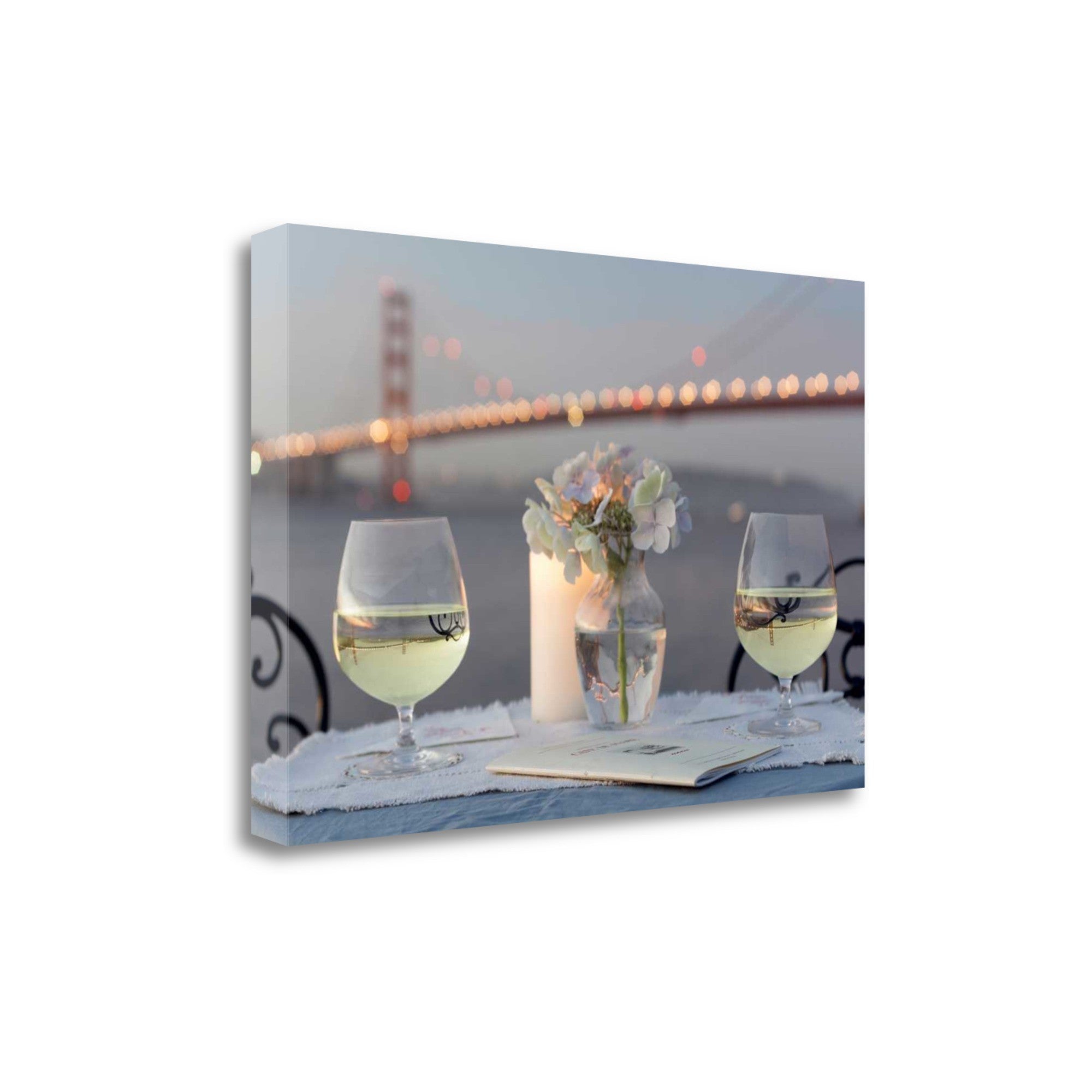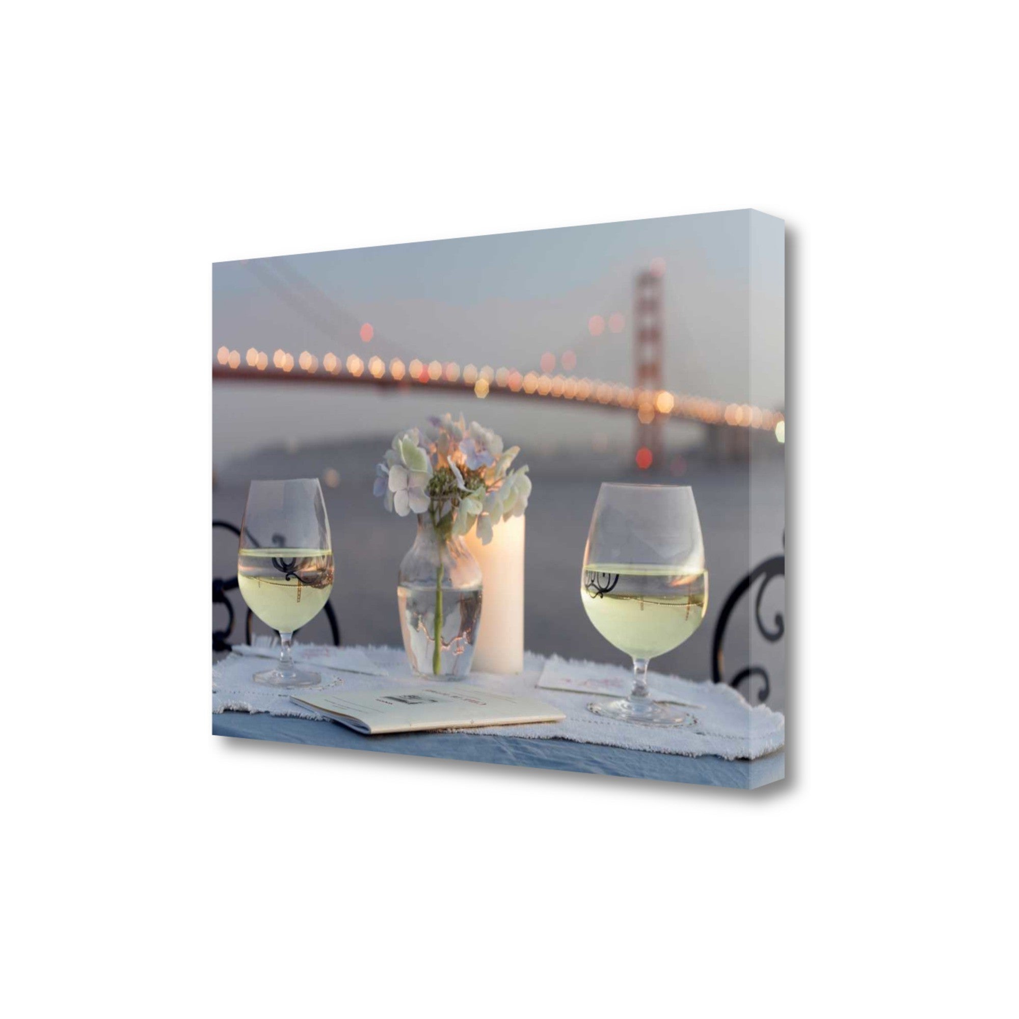 Up Close Romantic Wine Night For Two Golden Gate Bridge 2 Giclee Wrap Canvas Wall Art
