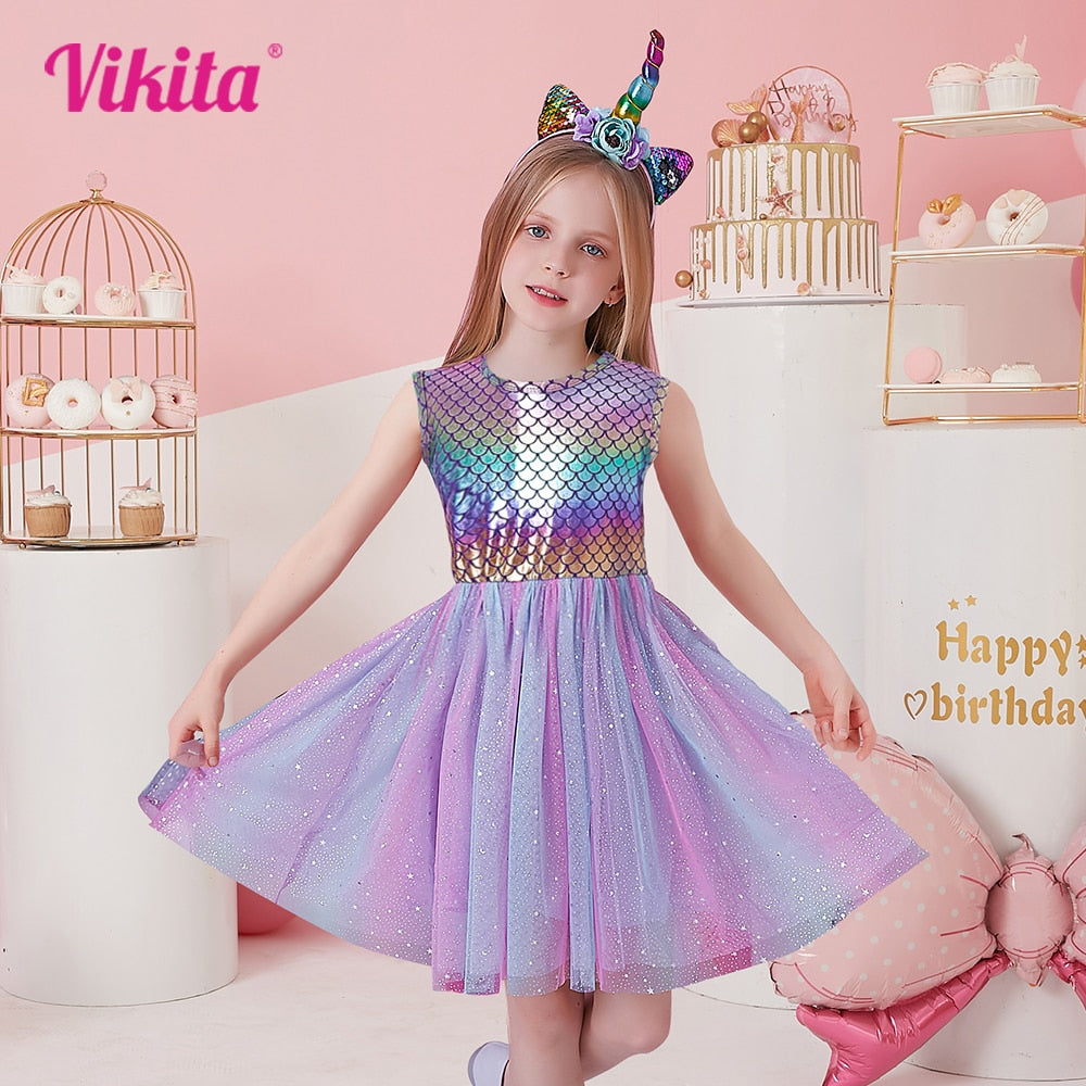 VIKITA Girls Summer Sleeveless Dress Children Birthday Party Tutu Dress Kids Cotton Costume Baby Girl Princess Dress  Clothes