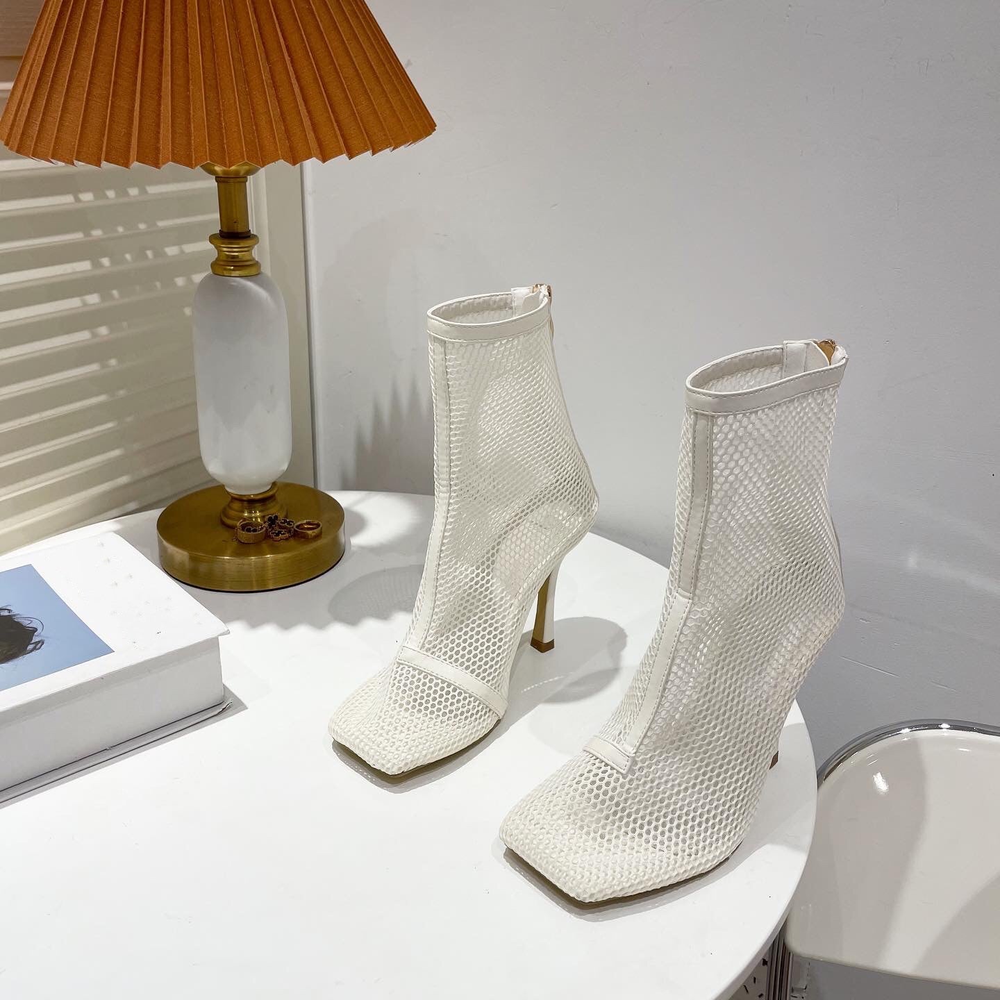 Xibeilove 2023 New Fashion Women Ankle Boots Sexy Square Headed Mesh Zipper Green High Heel Breathable Party Ball Shoes