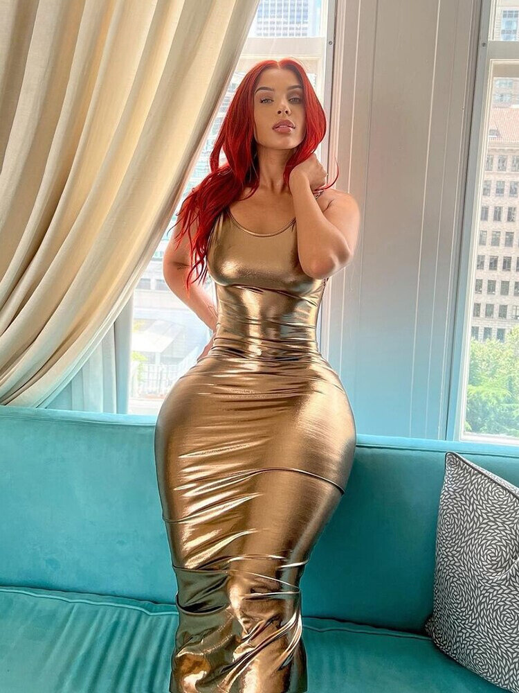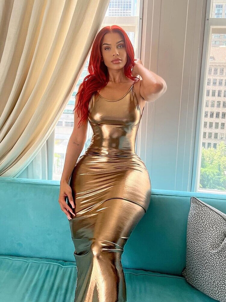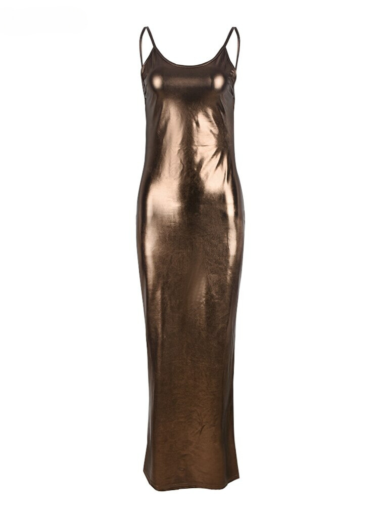 XIKTOP Spaghetti Strap Slim Dress Women Summer Sexy Backless Sleeveless Robe Stylish Metallic Color Night Club Dresses Partywear