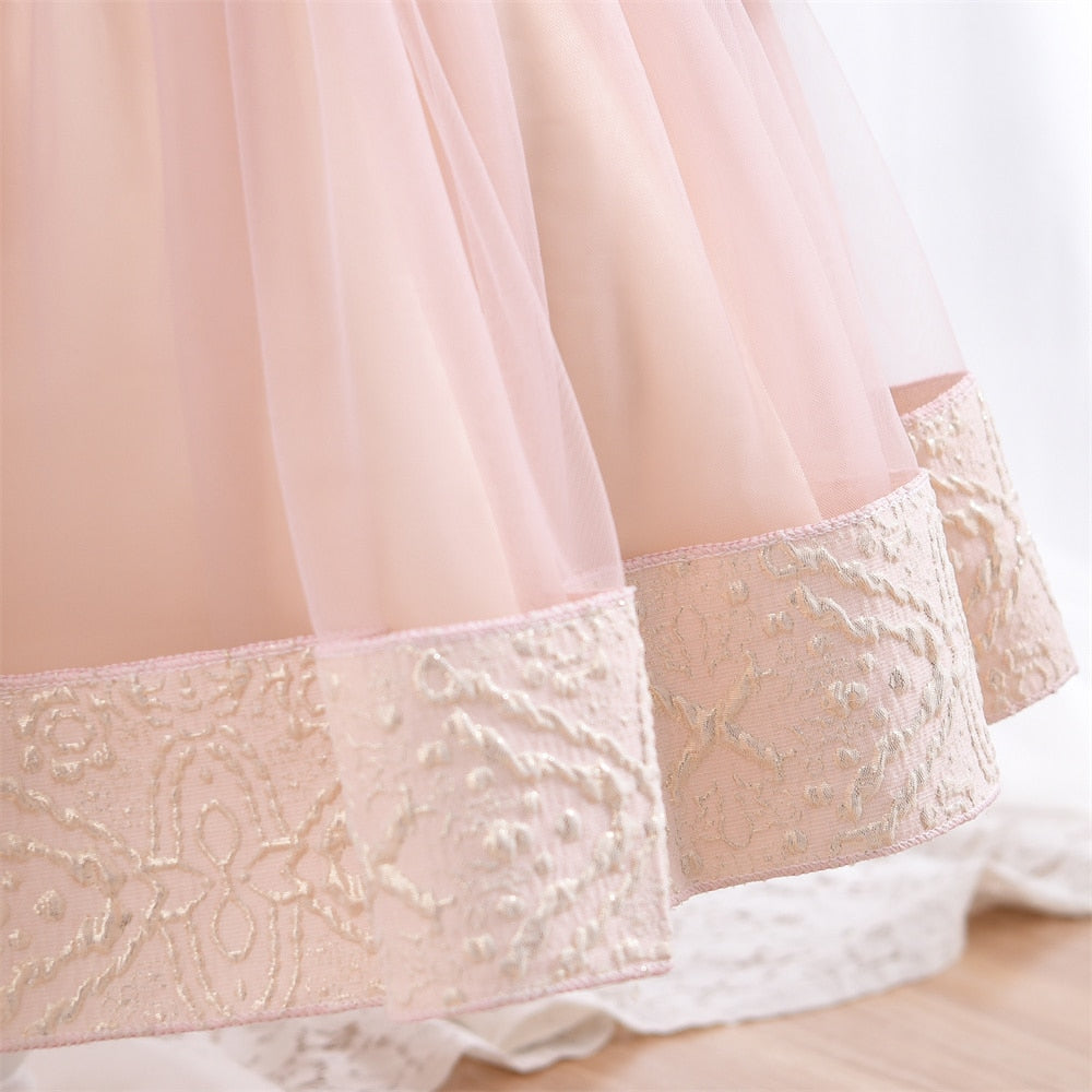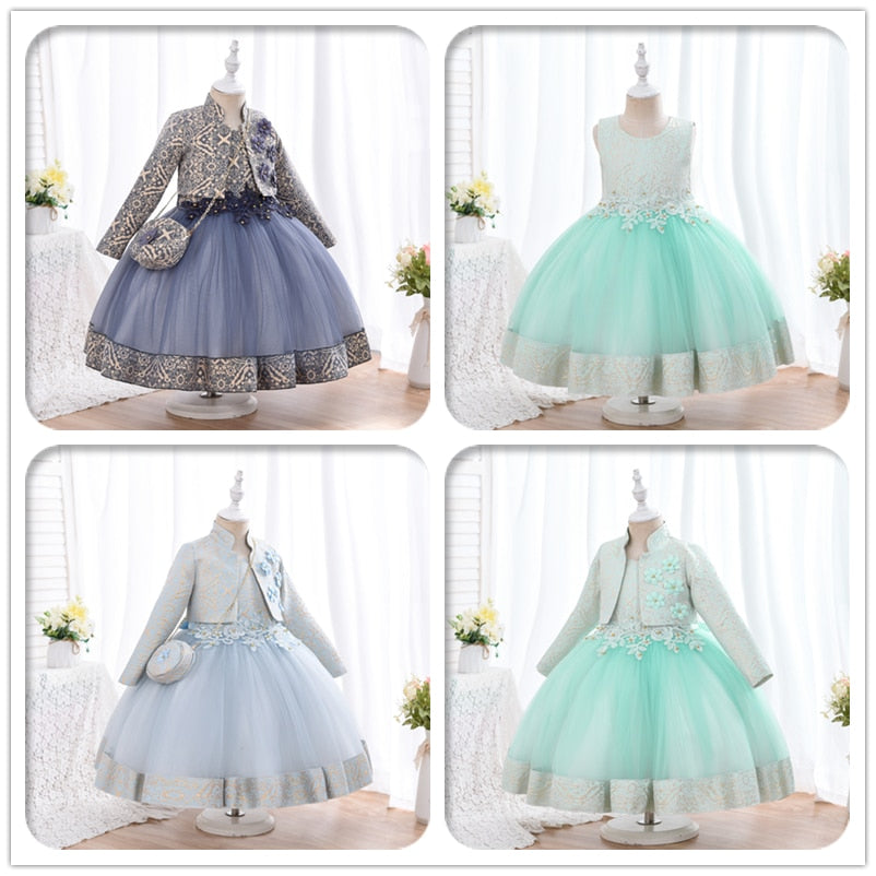 Yoliyolei 3pcs/set Puffy Dress for Girls Jacquard Pattern Tulle Patchwork Children Clothing 3D Appliques Casual Birthday Dresses